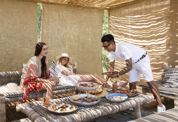 Le lido offre le meilleur en matière de restauration avec un restaurant gastronomique de poissons et de pizzas, un bar à cocktails et un espace Club Lounge. Des cabanes privées, des belvédères pour une intimité maximale et des chaises longues surdimensionnées sont disponibles.